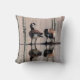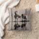 Dit werpen kussen met twee migrerende Canada Gese die op een logboek in een ondiepe vijver zitten. Hun bruine, zwarte en witte markeringen worden in het water weergegeven. De waterrimpels creëer een fascinerend verticaal patroon van gereflecteerde ganzen en boomstammen. Het afbeelding wordt op de achterkant herhaald.