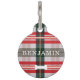 Candy Cane Red Pset Pattern Dog Bone & Monogram Huisdierpenning