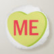 A lime green candy heart that says, "ME."