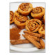 Cannelle en poudre et bâton avec des mini rouleaux de cannelle cuits sur une plaque blanche