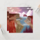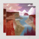 Dit prachtige landschapsontwerp toont een kloof die naar de oceaan en de zonsondergang leidt met verschillende tinten rood, karmozijnrood, beige, sinaasappel en bruin.