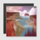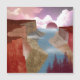 Dit prachtige landschapsontwerp toont een kloof die naar de oceaan en de zonsondergang leidt met verschillende tinten rood, karmozijnrood, beige, sinaasappel en bruin.