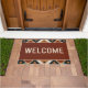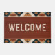 Met een gedurfd zuidwest-geïnspireerd geometrisch patroon in tinten van terracotta, crème en zwart, is deze mat perfect voor diegenen die een rustieke, aardse sfeer voor de deur willen brengen. De "WELKOM" tekst is gecentreerd in een schoon, modern lettertype, het toevoegen van een eigentijdse touch aan de traditionele tribale ontwerp.