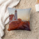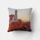Op deze foto staat de stijgende zon achter de vuurtoren langs de rotsachtige kustlijn. Een witte omheining helpt de vuurtoren van het zee te scheiden.