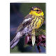 Schitterende levendige kleuren van lavendars, paars en geel op een Cape May Warbler. Geweldige geschenken van posters, omkaderde prints, mokken, magneten en nog veel meer voor vogelliefhebbers.