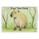 Een klein schilderij van een Capybara dat in de lente onder blauwe bloemen zit. Pas de tekst aan door deze aan uw wensen aan te passen.