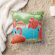 Origineel kunstontwerp van tropische roze flamingvogels door kunstenaar Carolyn McFann van Two Spinnende Cats Studio, gedrukt op een Amerikaanse kwaliteitskussens van Mojo voor wildliften.