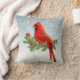 Beau cardinal rouge sur neige arrière - plan joyeux Noël et joyeuses vacances coussin