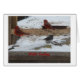 La photographie sauvage d'oiseau de nature, de deux cardinaux du nord masculins et d'un Junco Noir-eyed alimentant sur la terre neigeuse, et une salutation d'hiver ornent cette carte--masquez l'intérieur pour votre propre message personnel.