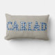 Een leuke lumbale kussen met het Welsh woord 'CARIAD' gevuld met een blauw controlepatroon op een hessian-gekleurde (burlap) achtergrond. Perfect geschenk voor degene van wie je houdt!