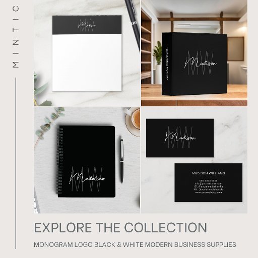 Monogram Logo Black White Modern Business SuppliesConçu par Laura I.
