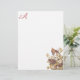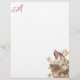 Verstuur je warme wensen met deze verzorgingsfamilie van vogels die rechts onderaan in dit monogrammed papier zitten. Audubon's Carolina Pigeon of Turtle Dove (Mourning Dove) familie negeert in een boom met delicate witte bloemen. kunstreproductie van een origineel John James Audubon. De monogram kleur wordt bemonsterd vanuit het roze midden van de bloemen om perfect te coördineren met de illustratie.