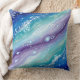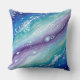 This vibrant throw pillow features abstract fluid art in turquoise, indigo and lavender swirls with pearlescent bubbles-cosmic marble textures evoking ocean waves and galaxies. Add a fun splash of color to your home decor.