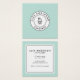 Une carte de visite moderne rétro avec un logo circulaire noir et blanc à l'avant sur un arrière - plan bleu pastel moelleux. La couleur de l'arrière - plan peut être changée en n'importe quoi qui correspond à votre entreprise. Il conviendra à tous ceux qui font des cupcakes, qui possèdent une pâtisserie ou une boulangerie mariage.