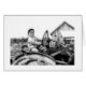 Petite fille sur le tracteur agricole, image vintage, vers 1958.