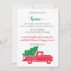 Joli sapin de Noël dans un Camion rouge Nous avons déménagé faire-part de déménagement Carte postale avec Voiture Rouge Vintage et Arbre de Noël décoré sur le dessus