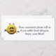 Carte Avis d'allergie au restaurant