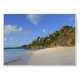 Carte blanche avec photo Arrière - plan prise à Antigua Barbuda dans les Caraïbes, prête pour vos textes et images. Cette image est d'une plage avec des maisons de location / cabines dans l'arrière - plan.