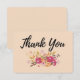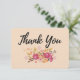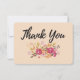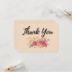 Carte de remerciements avec une jolie image numérique faite d'aquarelles. Fleurs roses et oranges dans un bouquet avec brindilles, sprigs et feuilles dans les couleurs marron et orange. L'arrière - plan est de couleur pêche pastel.