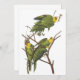 Il s'agit d'un groupe de quatre Perruches Carolina assis sur une branche. Il y a trois hommes et une femme. La femelle est toute verte tandis que les mâles ont des têtes jaune vif avec du rouge autour et entre leurs yeux.