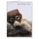 Une carte de voeux au format portrait montrant un adorable portrait en gros plan d'un Coati (Nasua narica) à nez blanc, membre de la famille des procyonidae, qui se pose la tête sur un membre d'un arbre alors qu'il se prépare à faire une sieste. Le texte peut être modifié ou supprimé à l'aide du modèle Personnalisez-le. Vous pouvez modifier les polices de texte, la taille, la couleur, la position et l'alignement en cliquant sur le bouton Customiser.