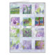 Une collection de parties de mes différentes aquarelles représentant des prés, des montagnes, des fleurs et une petite maison d'oiseaux.