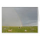 Un lama garde les moutons sous un arc-en-ciel.