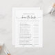 Connais-tu bien l'épouse ? Jeu de Fête des mariées Faites de votre douche de nage une expérience inoubliable avec notre jeu "Printable How Well Do You Know the Bride?". Ce jeu amusant et interactif est le parfait brise-glace, réunissant les invités pour célébrer la future mariée dans le style. Caractéristiques du jeu : Questions passionnantes : Inclut une variété de questions sur la mariée, de ses aliments préférés à ses souvenirs d'enfance. Belle conception : Design élégant et chic qui s'intègre parfaitement avec n'importe quel thème de douche nuptiale. Impression de haute qualité : Imprimée de manière professionnelle sur papier de qualité supérieure pour un aspect luxueux. Facile à jouer : Des instructions simples facilitent la participation et le plaisir de tous. Comment jouer : Distribuez les cartes de jeu à tous les invités. Demandez-leur de répondre aux questions en fonction de leur connaissance de la mariée. La personne avec les réponses les plus correctes gagne un prix spécial! Pourquoi Choisir Notre Jeu ? Parfait pour les Fêtes des mariées : Une excellente façon de divertir les invités et de célébrer la mariée. Personnalisable : Ajoutez le nom de la mariée et la date de la douche pour une touche personnelle. Soupirs mémorables : Les clients peuvent rapporter leur carte comme souvenir de la journée spéciale. Amusant et interactif : permet à chacun de s'engager et de créer des souvenirs durables. Ajoutez une touche personnelle et divertissante à votre douche nuptiale avec notre jeu "How Well Do You Know the Bride?". Commandez le vôtre aujourd'hui sur Zazzle et assurez-vous que votre célébration est à retenir!