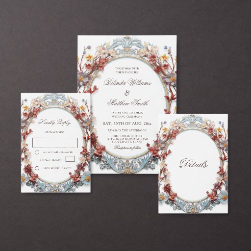 3D Victorian floral wreath details card.