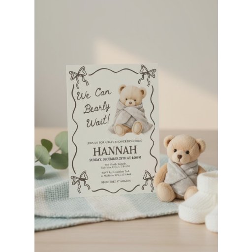 Add a sweet touch to your baby shower with this Bear Diaper Raffle Card! Featuring a cute watercolor teddy bear in beige tones, it invites guests to bring a book instead of a card. Easily personalize the text, choose from premium papers and sizes, and enjoy fast printing and shipping. A perfect match for neutral baby shower theme!