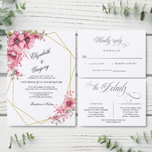 Pink Floral Wedding Invitation SuiteConçu par Phyllis Waugh