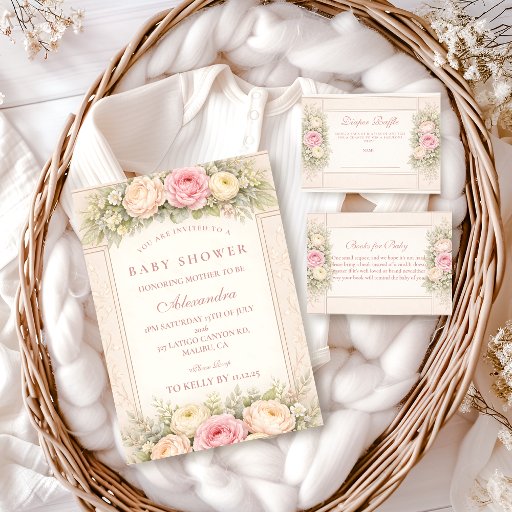 Carte D'accompagnement Blush Ranunculus And Rose Garden Diapper Raffle