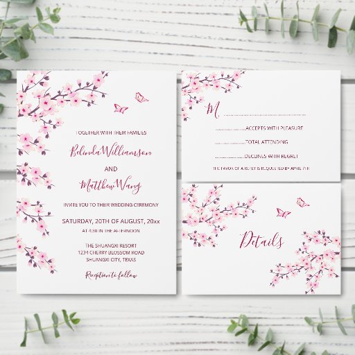 Carte D'accompagnement Cherry Blossom Pink White Wedding Details