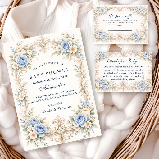 Dusty Blue Rose Baroque Baby ShowerConçu par Andreea Eremia