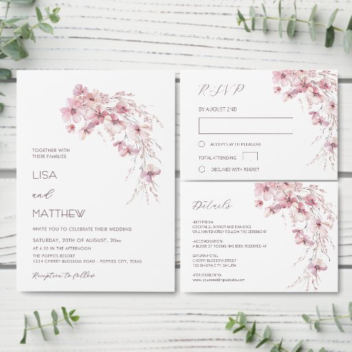 Carte D'accompagnement Dusty Pink Boho Wildflowers Details