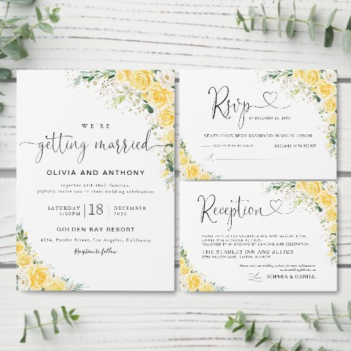 Elegant Yellow Wedding Details Card is a beautifully designed enclosure card featuring soft yellow tones that symbolize joy, warmth, and celebration. With clean typography and an organized layout, this details card clearly presents important wedding information such as the schedule, venue, accommodations, or dress code. Perfect for classic, garden, or modern weddings, it coordinates seamlessly with the rest of the yellow wedding stationery suite while adding a polished and thoughtful touch to your invitation set.