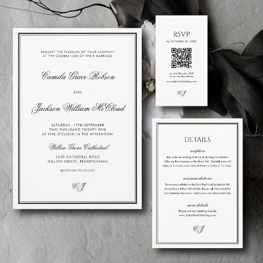 This Personalized Modern Black and White Wedding Details Qr Code Enclosure Card is a timeless addition to your wedding invitations and wedding invitation ideas. Designed to pair beautifully with any wedding invitation or wedding invitation cards, it completes your wedding invitation suite with ease. Perfect for vintage wedding invitations or wedding invitation templates, it enhances classy wedding invitations and modern styles alike. Ideal for wedding invitations ideas, black and white wedding invitations, simple wedding invitations, elegant wedding invitations, modern wedding invitations, and minimalist wedding invitations. Inspired by italian wedding, victorian wedding, and vintage italian weddings.