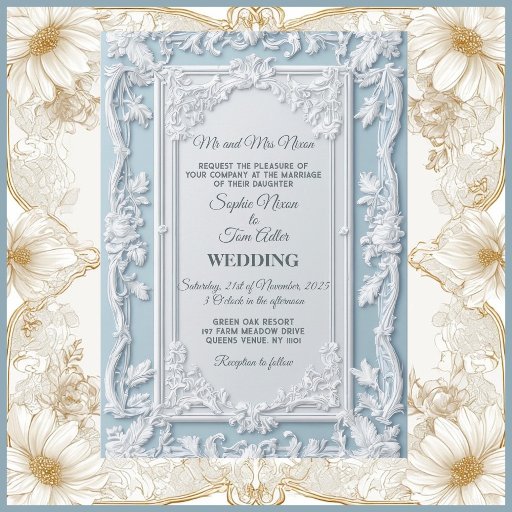 Romantic French Toile Blue Florals Wedding Details Enclosure Card to ease your guests and provide necessary information. Historically, enclosure cards, also known as insert cards - played a vital role in formal wedding correspondence, particularly among aristocratic and upper-class European societies. These cards were used to convey supplementary information such as reception details, accommodations, directions, and social etiquette. In France, where refinement in written communication was considered an art form, such inserts were often crafted with as much care and ornamentation as the primary invitation itself. This design continues that tradition, elevating practical information into an elegant extension of your wedding narrative.