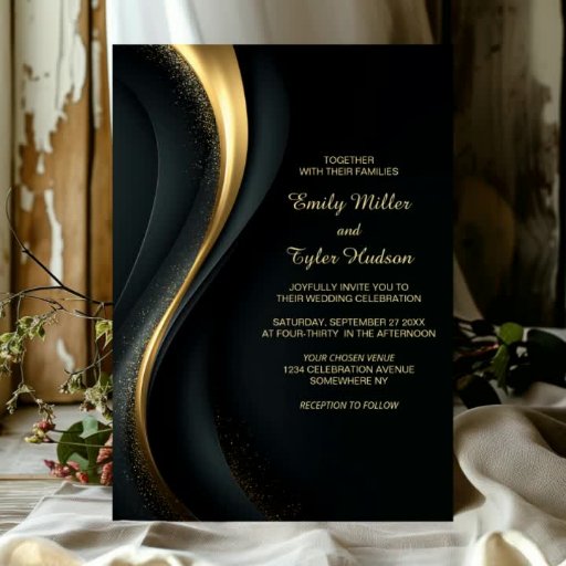 Carte D'accompagnement Simple Black and Gold Wedding Details
