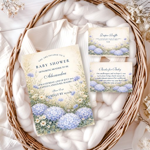Elegant Dusty Blue Hydrangea Garden Baby ShowerConçu par Andreea Eremia
