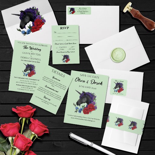 Elegant Sage Black Unicorn Floral Fantasy WeddingConçu par Kari-Ann Anderson