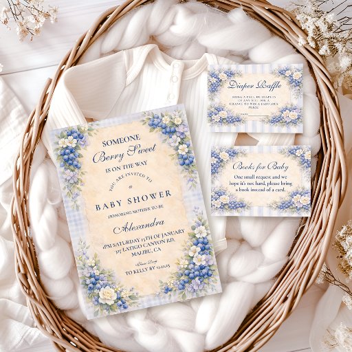 This blueberry-themed collection features soft blue florals, delicate berry clusters, and elegant ribbon bows arranged in a romantic garden composition. Inspired by vintage botanical illustrations and storybook aesthetics, the artwork blends gentle watercolor textures with a calm blue palette for a timeless, refined look. Perfect for creating a cohesive and charming celebration atmosphere with a soft, nature-inspired feel.