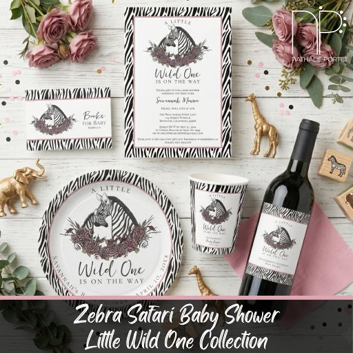 The title and baby’s name are editable, and the back includes a customizable message where you can ask guests to bring a favorite book instead of a card. Perfect for zebra baby showers, safari themes, wild one parties, and baby girl celebrations, this enclosure card is a charming addition to your baby shower invitation suite.
