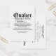 Définition amusante des Quakers sur le devant. Au verso, placez vos informations de réunion ! Remettez-les aux nouveaux arrivants et aux visiteurs, insérez-les dans les mailings, portez-les avec vous !