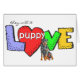 L'image de couverture est une photographie numérique d'un rottweiler se reposant devant le texte coloré qui lit : "Ils l'appellent amour de chiot". Vous pouvez customiser l'intérieur de cette carte en changeant ou en enlevant le texte et employer cette carte pour presque n'importe quelle occasion.