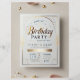 Le design "All-in-One Birthday Party Invitation" présente une disposition vibrante et festive avec des ballons colorés, des confettis et une illustration de gâteau d'anniversaire. Le haut présente un texte ludique invitant les invités à la fête, tandis que la partie inférieure offre un espace pour des détails essentiels comme la date, l'heure, le lieu et les informations RSVP. Avec un arrière - plan lumineux et joyeux dans les tons de dégradé, cette carte est parfaite pour créer de l'excitation et donner un ton joyeux pour la fête à venir. Idéal pour les fêtes d'enfants ou tout événement d'anniversaire amusant !