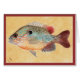Poisson solaire à longue portée - vue latérale détaillée d'un poisson solaire à longue oreille, Lepomis megalotis, en couleurs de reproduction orange et bleue. L'illustration est dans un style ancien avec un arrière - plan couleur parchemin. D'une aquarelle de M Rogers.