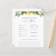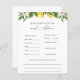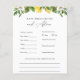 Carte de conseil et de prédictions baby showers avec citrons aquarelle et verdure. Une façon amusante d'interagir avec les invités pendant votre baby shower. Correspond à la collection vintage de citron dans la boutique Adore Paper Co Zazzle.