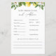 carte de conseils et de prédictions baby showers avec des branches de citron aquarelle. Une façon amusante d'interagir avec les invités pendant votre baby shower. Collection correspondante dans la boutique Adore Paper Co Zazzle.