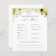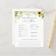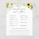 Carte de conseils et de prédictions baby showers avec des tournesols aquarelle et de la verdure. Une façon amusante d'interagir avec les invités pendant votre baby shower. Correspond à la collection de tournesol sauvage dans la boutique Adore Paper Co Zazzle.